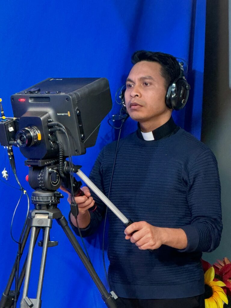 Father Andito in the multi-media studio at the University of Santa Croce.